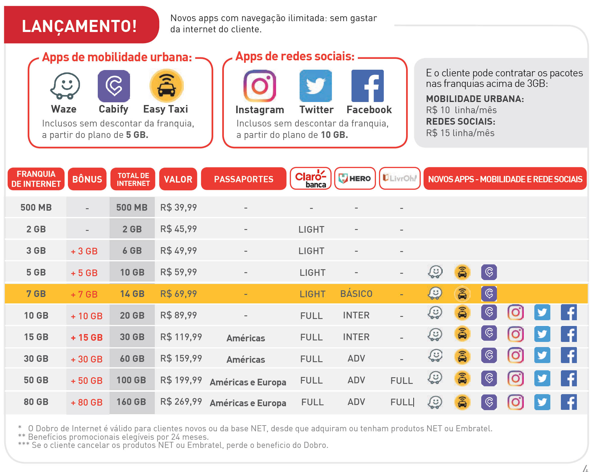 Chamadas ilimitadas Brasil + 100GB de internet: R$199,99